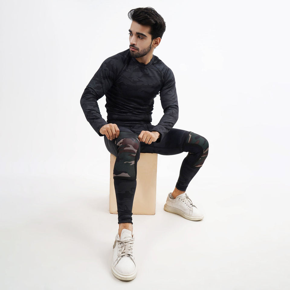 ปลอกเข่ากันลื่นลายพรางอนิเมะ 7 มม. แบบดันขึ้นได้ ช่วยยกน้ำหนัก ทำจากนีโอพรีน คุณภาพสูง ช่วยพยุงเข่า