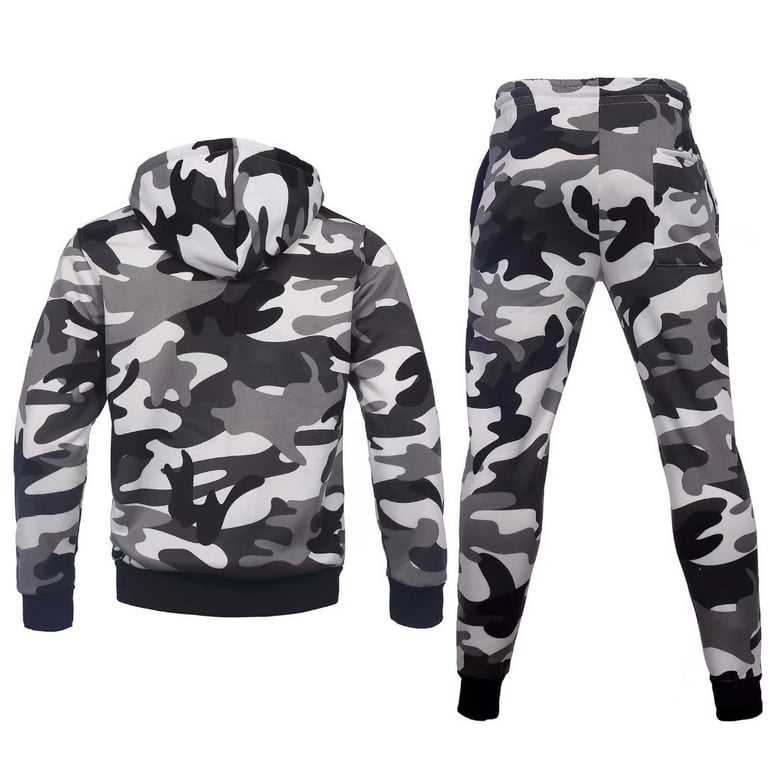 ชุดวอร์มมีสไตล์ลายพรางสำหรับผู้ชายชุดวอร์มลำลองแบบมีซิปและกางเกงสำหรับใส่เล่นกีฬาฟิตเนส