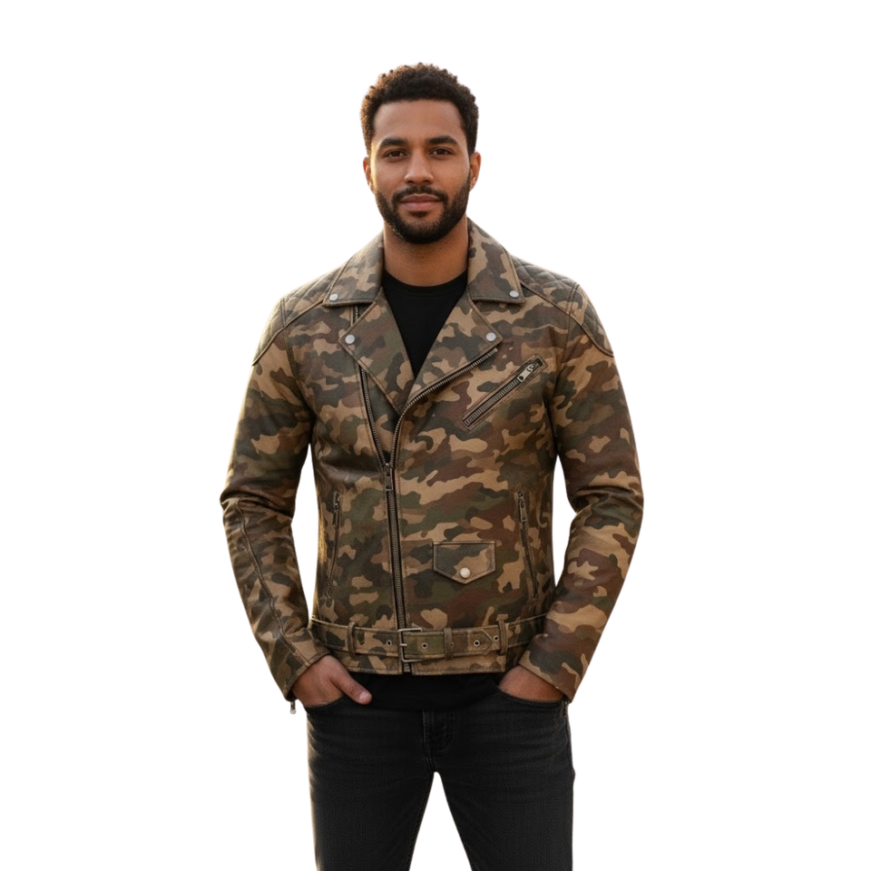 เสื้อแจ็กเก็ตหนังลายพรางสำหรับผู้ชายเสื้อแจ็คเก็ตหนังน้ำหนักเบาออกแบบโลโก้ได้ตามต้องการ