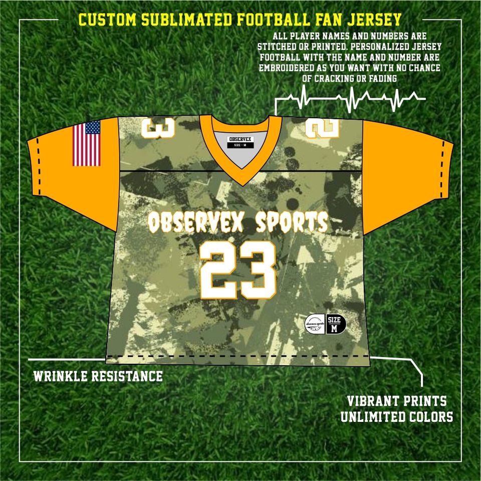 เสื้อเจอร์ซีย์อเมริกันฟุตบอลพรางตัวด้วยดีไซน์ใหม่ปรับแต่งได้เต็มที่32ทีมแฟนส่วยยาวแขนสั้น