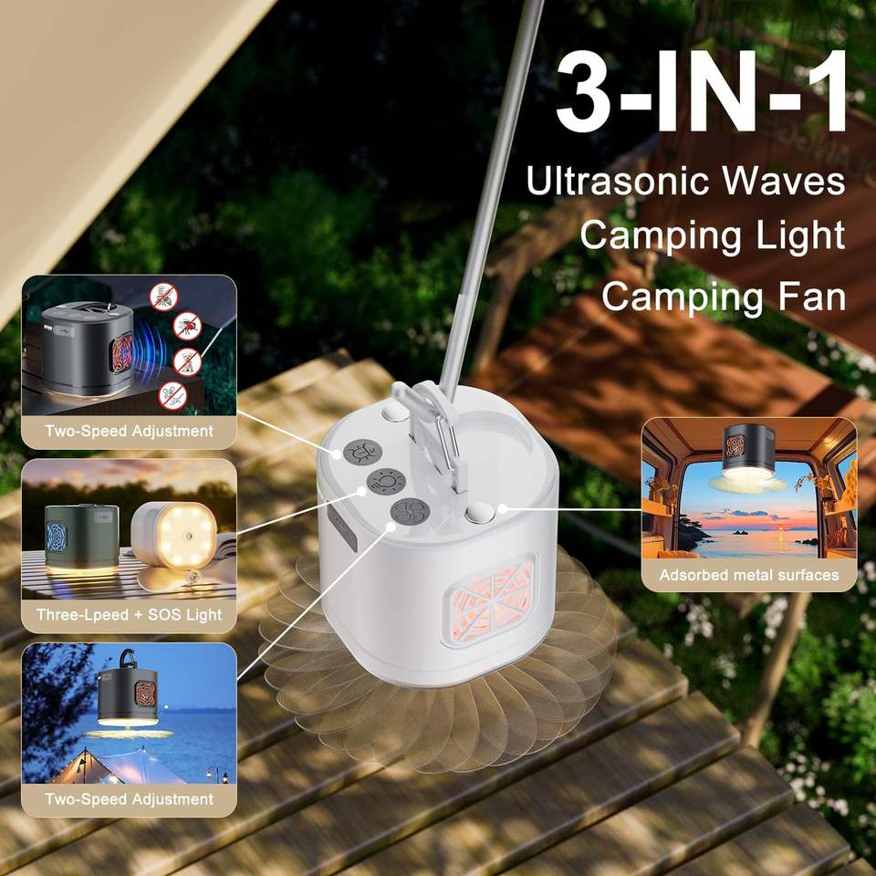 Camp Repeller แมลงศัตรูพืชอัลตราโซนิก, อัลตราโซนิคขับไล่ด้วยโคมไฟสำหรับแมลงสาบ, หนู, หนู, แมลง, ยุง, หนู, แมงมุม, มด