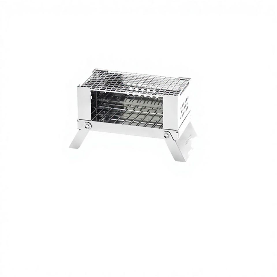 เตาปิ้งย่างพกพาแบบพับได้สำหรับตั้งแคมป์กลางแจ้ง ทำจากสแตนเลสชุบโครเมียม ขนาดเล็ก พร้อมอุปกรณ์ป้องกันเปลวไฟ ใช้ได้ทุกฤดู