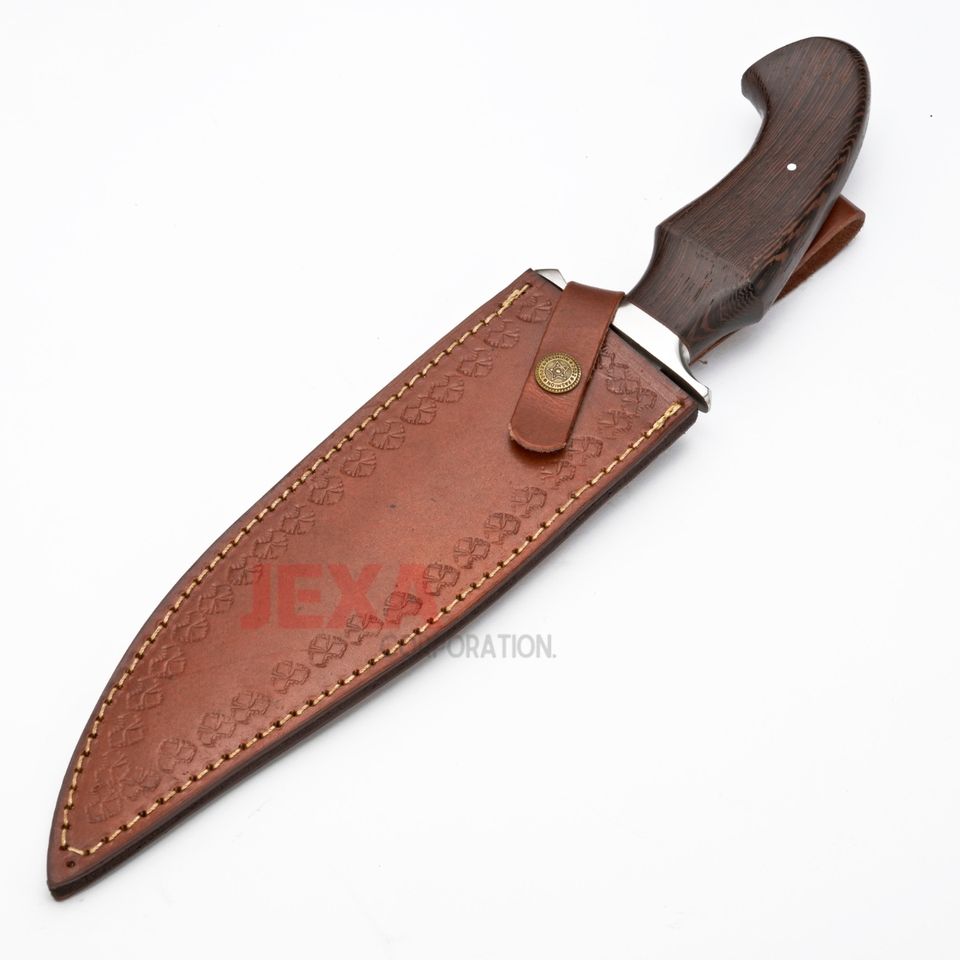 อุปกรณ์ตั้งแคมป์และเดินป่า มีดทำมือ Jexa-HC-001 มีดล่าสัตว์ ด้ามไม้เวงเก้ ปลอกหนัง ใบมีดคมบางส่วน