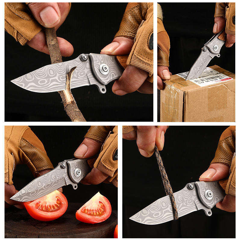 มีดพับอเนกประสงค์สำหรับตั้งแคมป์ วัสดุเกรดอุตสาหกรรม ใบมีดสแตนเลส ด้ามไม้ พร้อมปลอกหนัง ใช้สำหรับกิจกรรมกลางแจ้ง