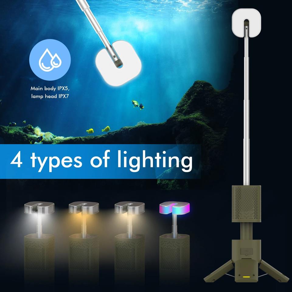 โคมไฟตั้งแคมป์ 14000mAh แบบชาร์จไฟได้ ไฟส่องสว่างแบบยืดหดได้ พร้อมขาตั้งแม่เหล็กและลำโพง พกพาสะดวก กันน้ำ ไฟฉาย LED สำหรับใช้งานกลางแจ้ง