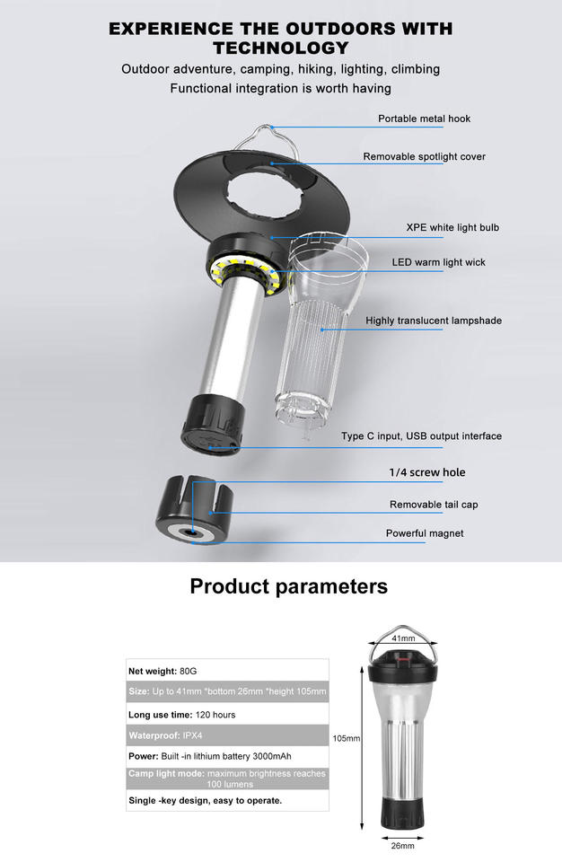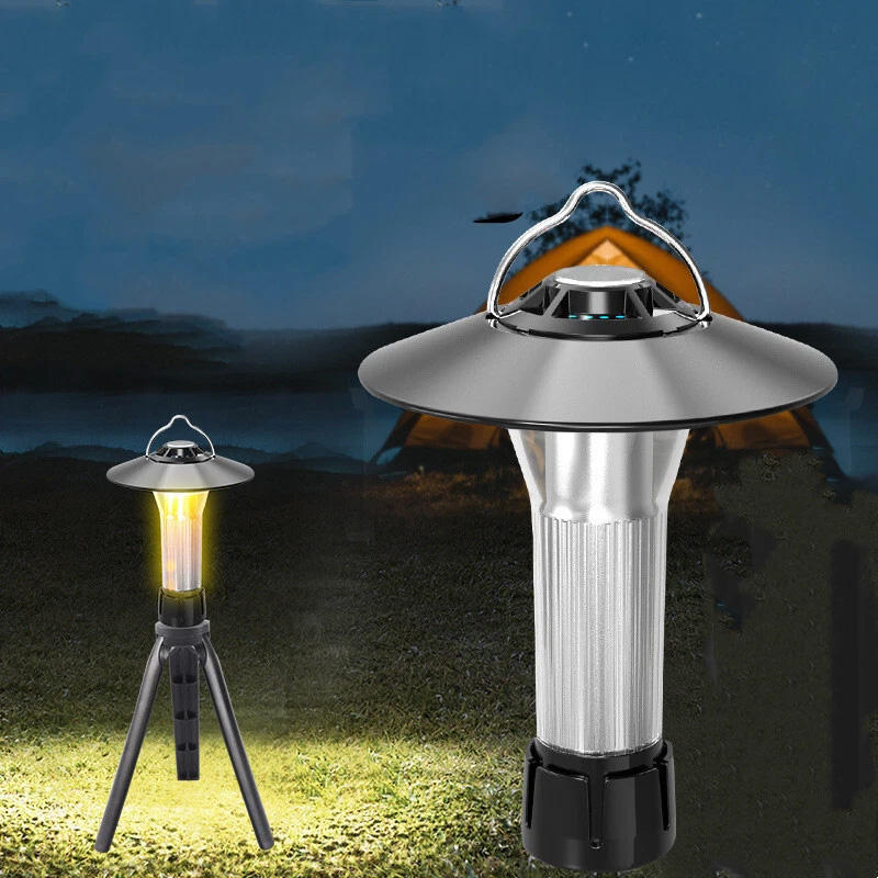 ไฟแคมป์ปิ้งโคมไฟแบบพกพาไฟฉาย USB ชาร์จได้แบบไม่มีขั้นบันไดลดแสงกันน้ำสำหรับการเดินป่า