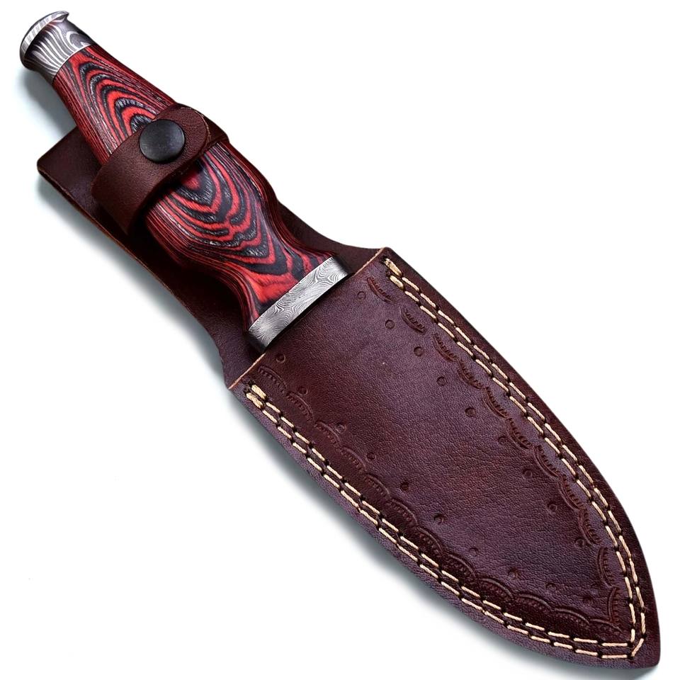มีดใบมีดเหล็กดามัสกัสอเนกประสงค์สำหรับตั้งแคมป์ ใบมีดคมสองด้านแบบคงที่สำหรับกิจกรรมกลางแจ้ง