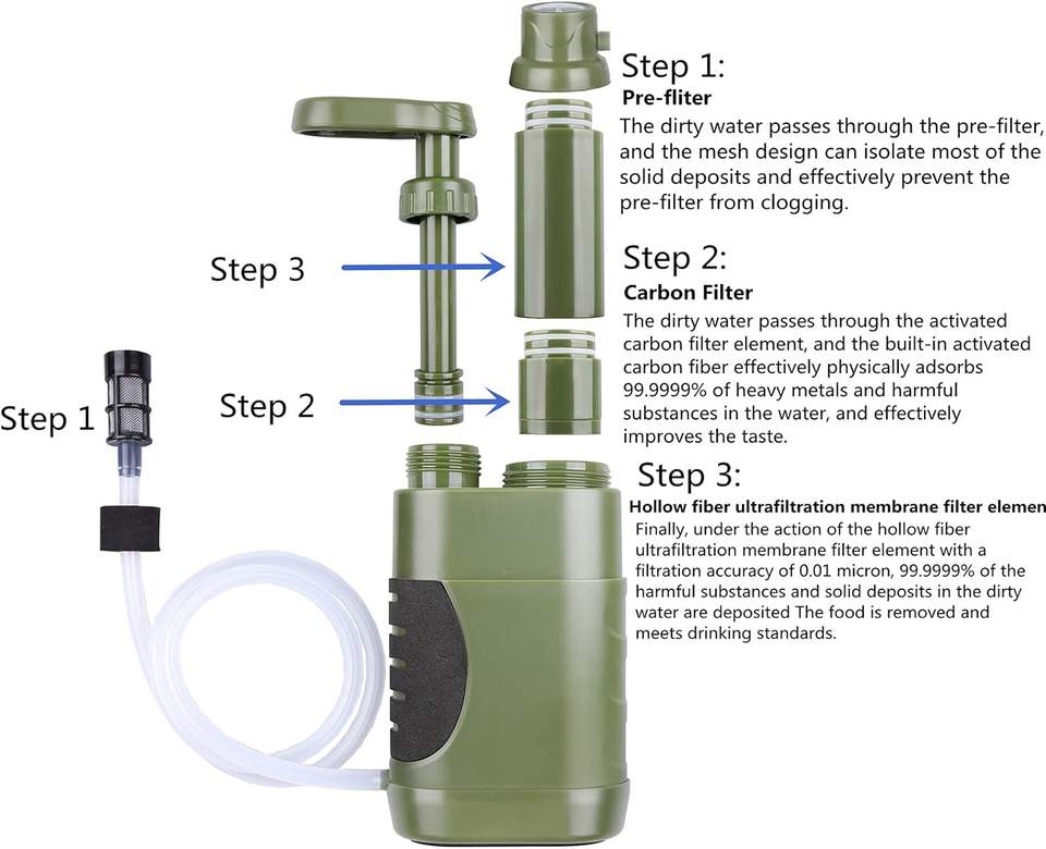 เครื่องกรองน้ำสำหรับตั้งแคมป์ ทำจากพลาสติก ABS ชุดอุปกรณ์ฉุกเฉินกลางแจ้ง กรองน้ำจากแหล่งน้ำต่างๆ แบบพกพา