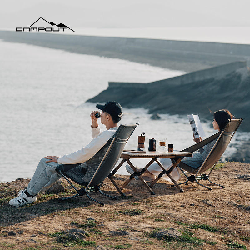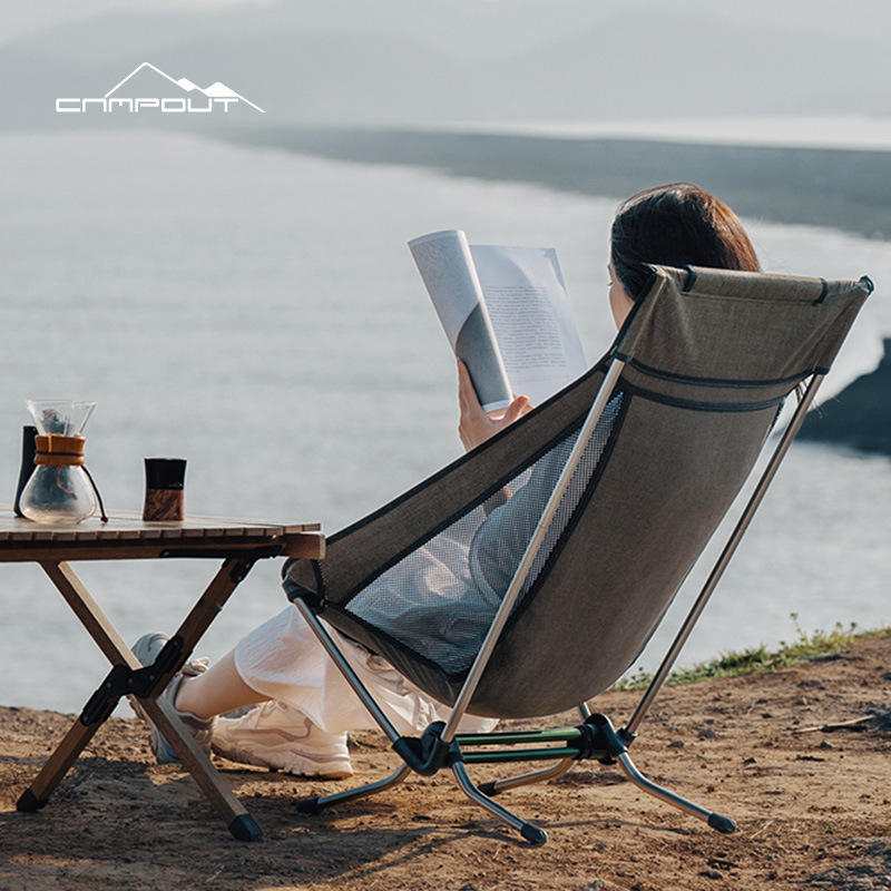 แคมป์เอาท์เก้าอี้พับสำหรับตั้งแคมป์ 48x70x85 ซม. เก้าอี้พักผ่อนหลังอะลูมิเนียมอัลลอยด์รูปวงรี สีเขียวโนเบิล สีเขียวทหาร