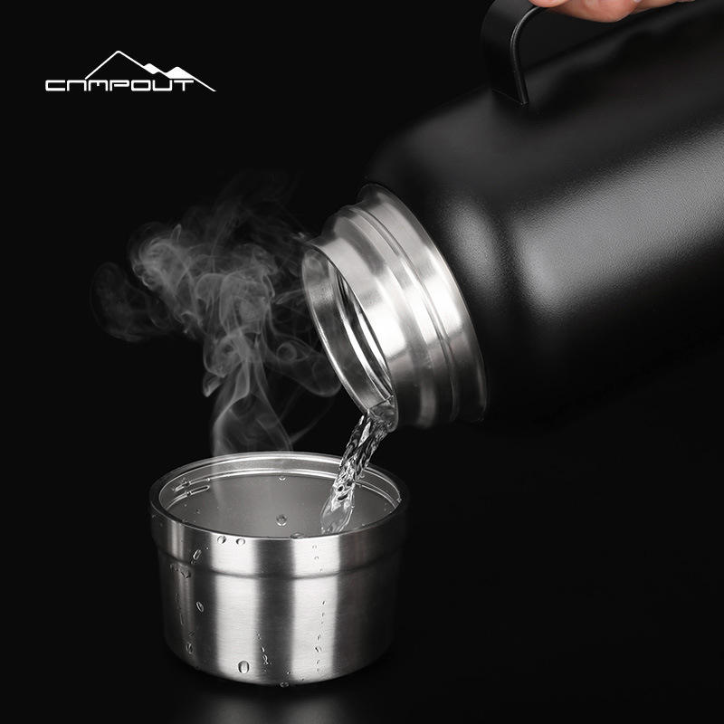 กระติกน้ำร้อนแคมป์เอาท์แบบสองชั้น สแตนเลส เก็บความร้อน พกพาสะดวก สำหรับการตั้งแคมป์และใช้ในบ้าน