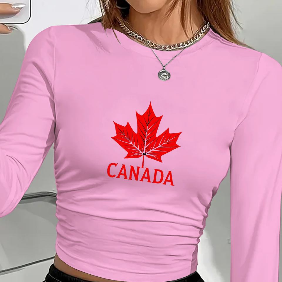 เสื้อแขนยาวผู้หญิงแฟชั่นใบเมเปิ้ลแคนาดา