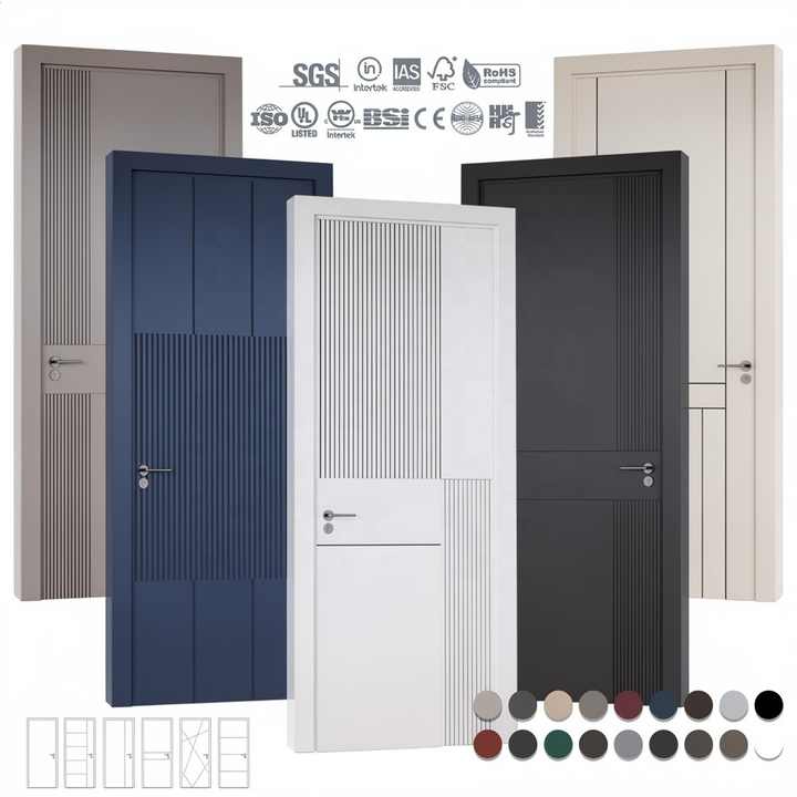 ประตูภายในแบบกันเสียงสำเร็จรูปสีดำแกนแข็ง ได้รับการรับรองจากแคนาดา ทนไฟ 20 นาที สำหรับอพาร์ทเมนต์ ประตูโพลีเมอร์ทันสมัย