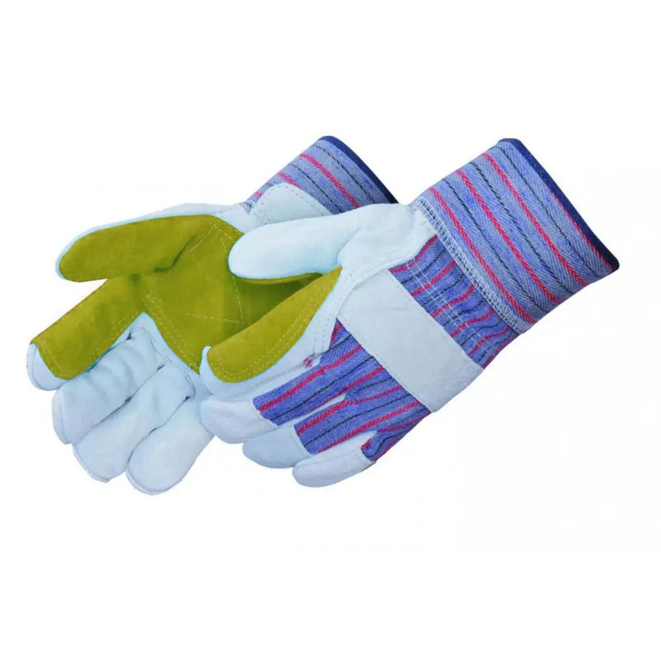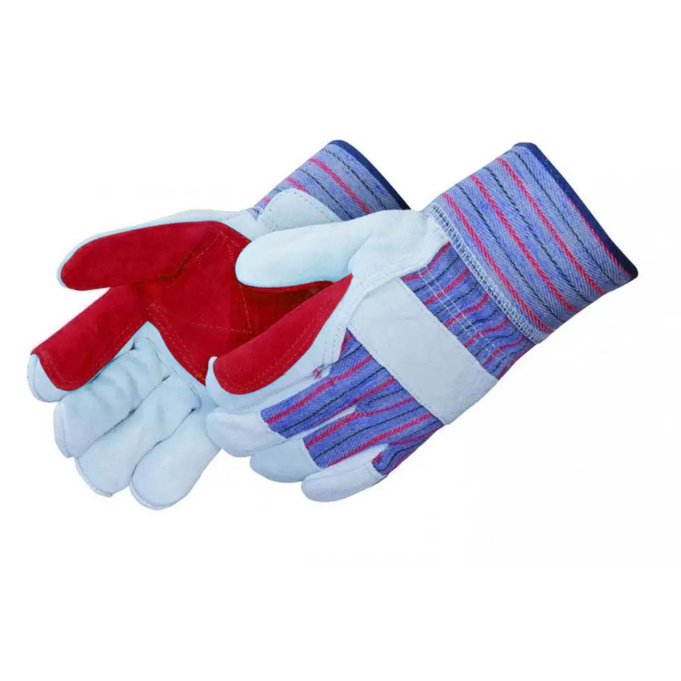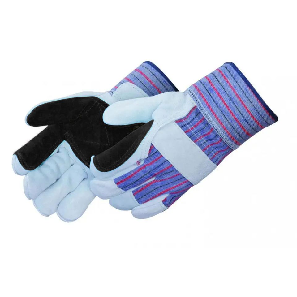 ถุงมือนิรภัยหนังวัวแบบแยกนิ้วของแคนาดาถุงมือทำงานผ้าฝ้ายแบบอุตสาหกรรมถุงมือป้องกันมือ