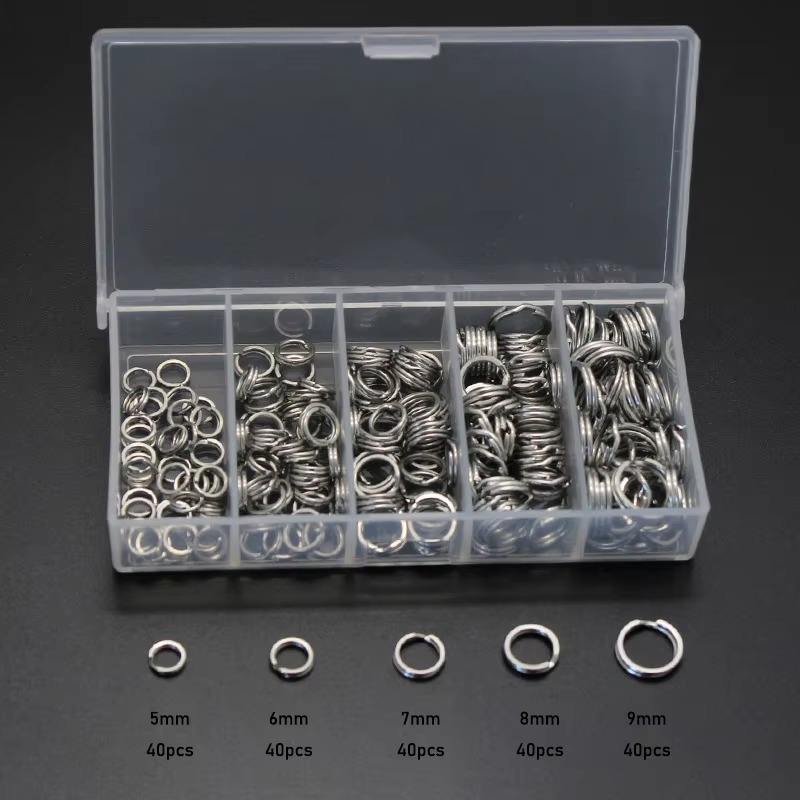 ชุดอุปกรณ์ตกปลาในน้ำตื้น แหวนแยกสแตนเลสสำหรับน้ำเค็ม ขนาด 5 มม.-9 มม. จำนวน 200 ชิ้น