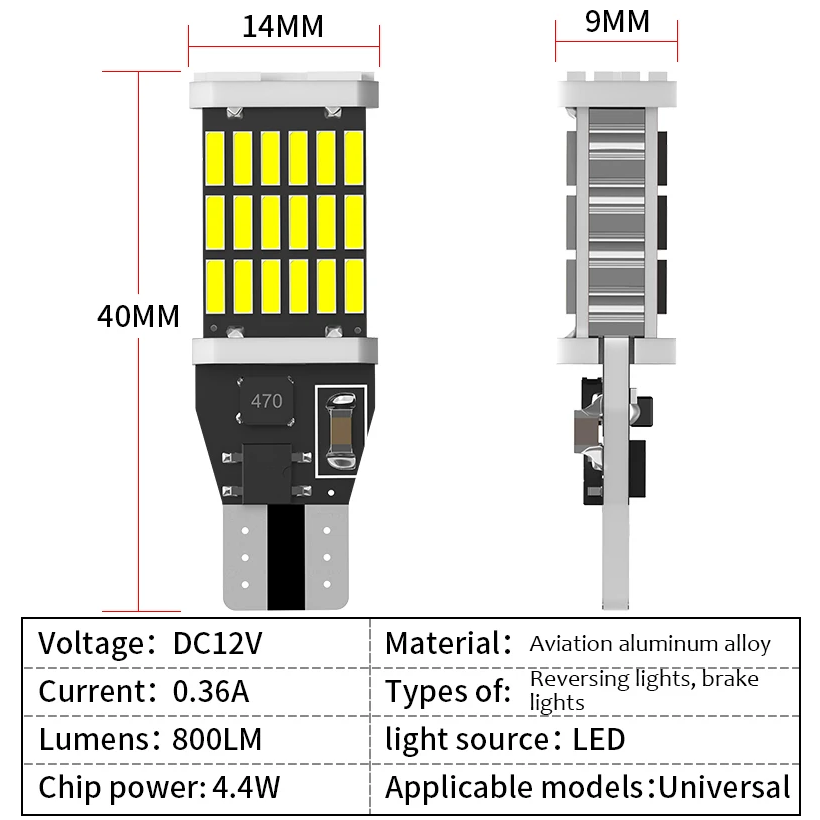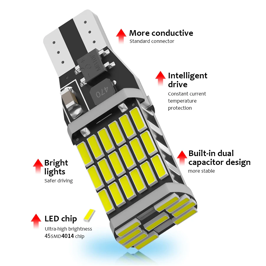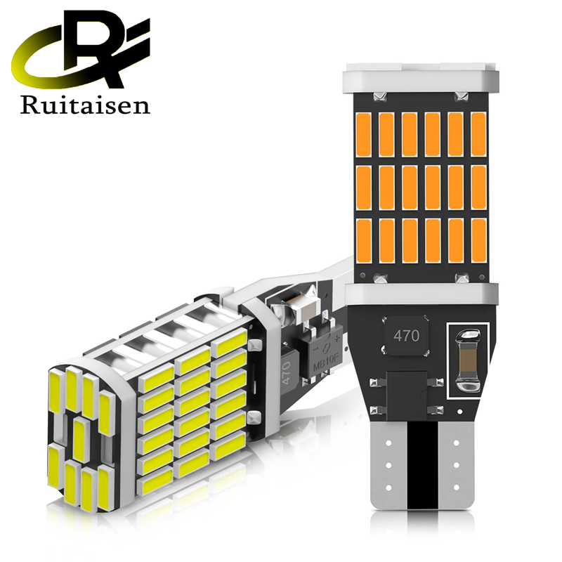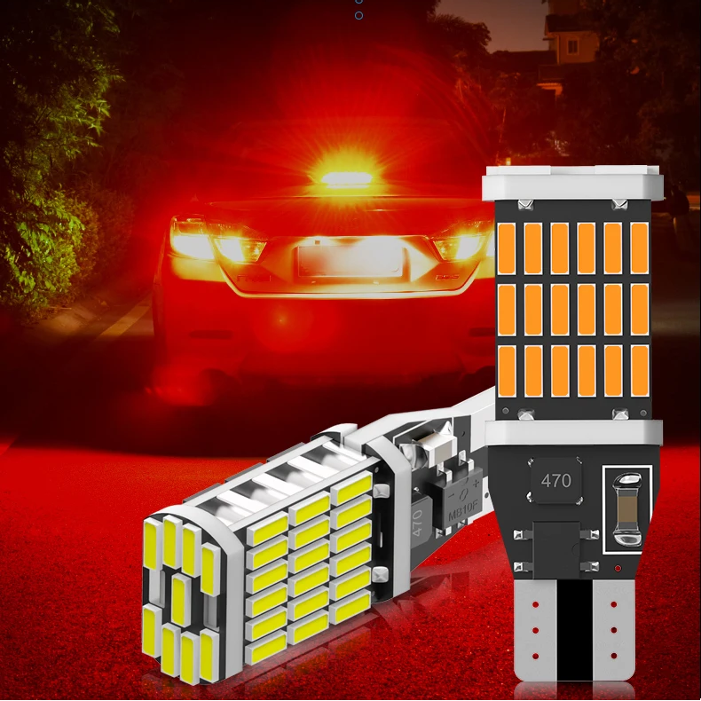 CANbus หลอดไฟ LED 45SMD 4014 WY16W W16W สำหรับรถยนต์ bcakup ไฟท้ายเบรคท้ายรถไม่มีขั้วไม่มีข้อผิดพลาดสีขาวสีแดงสีเหลืองอำพัน6000K