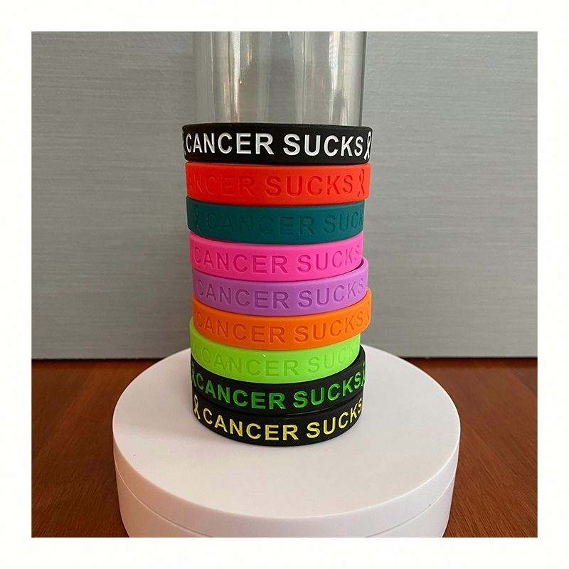 สายรัดข้อมือซิลิโคนสำหรับผู้ต่อสู้กับโรคมะเร็ง ผู้รอดชีวิตจากการรับเคมีบำบัด พร้อมริบบิ้นเพื่อสร้างความตระหนัก สร้างกำลังใจ และเป็นของขวัญให้กำลังใจ