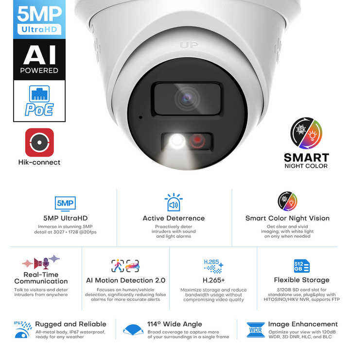 Canda 5MP hitosino สมาร์ทไฮบริดแสงแฟลชและเสียงปลุก IP กล้อง POE