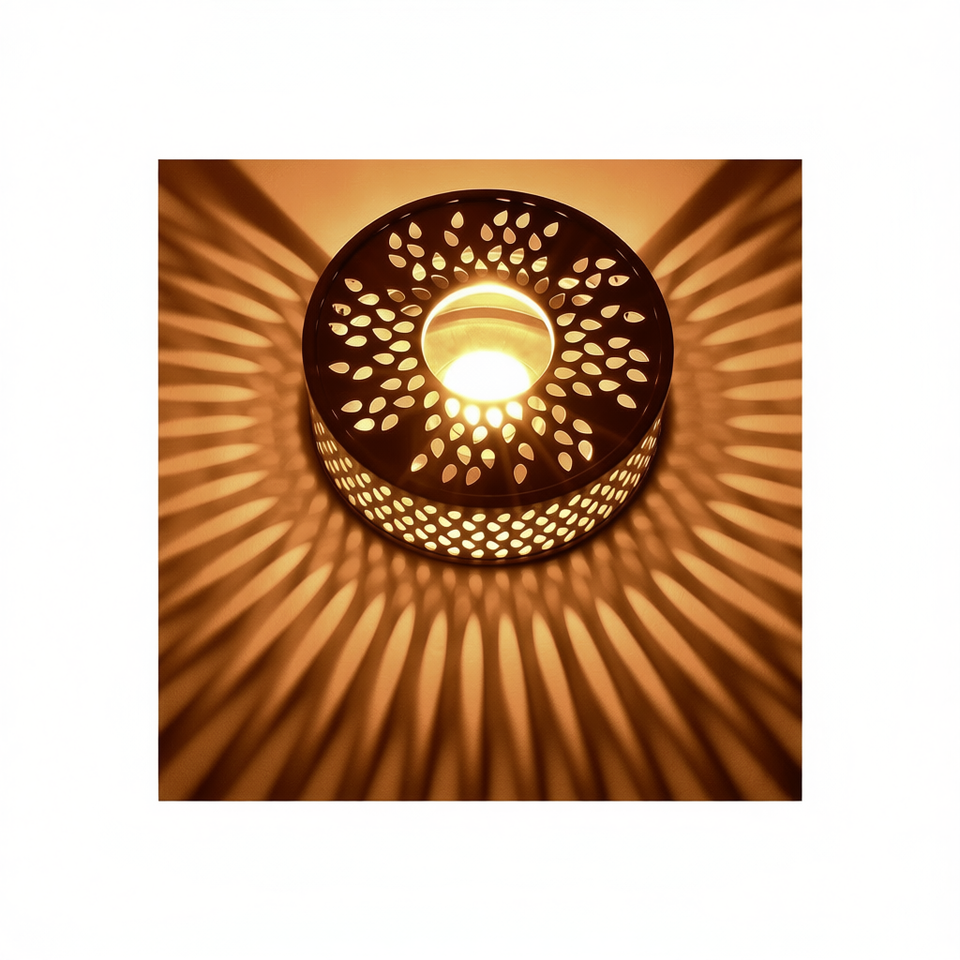 เชิงเทียนโลหะตัดด้วยเลเซอร์ โคมไฟตกแต่งพร้อมเอฟเฟกต์แสงอบอุ่น สำหรับใช้ภายในและภายนอกอาคาร