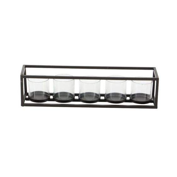 แท่นวางเทียนโลหะสีดำด้านทรงสี่เหลี่ยมพร้อมถ้วยแก้ว4ถ้วยที่ใส่ของตกแต่งบนโต๊ะ
