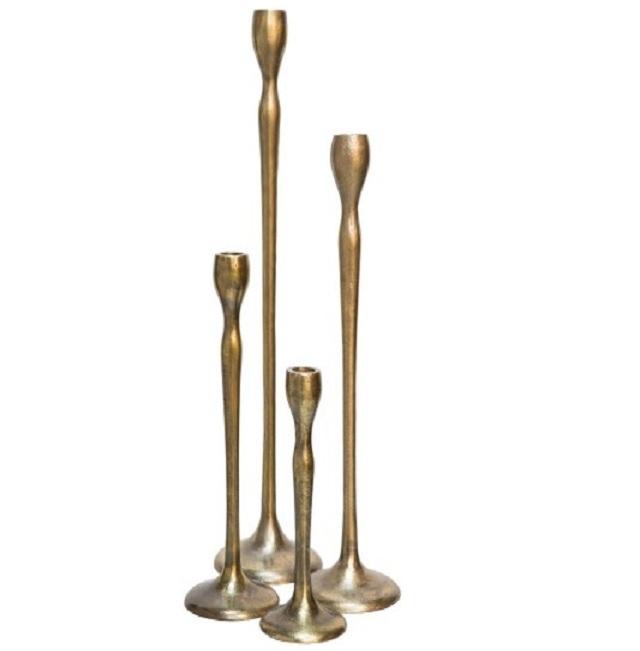 เชิงเทียนคู่พร้อมฐานโค้ง ดีไซน์ทันสมัย ทำจากโลหะอะลูมิเนียม สีทอง