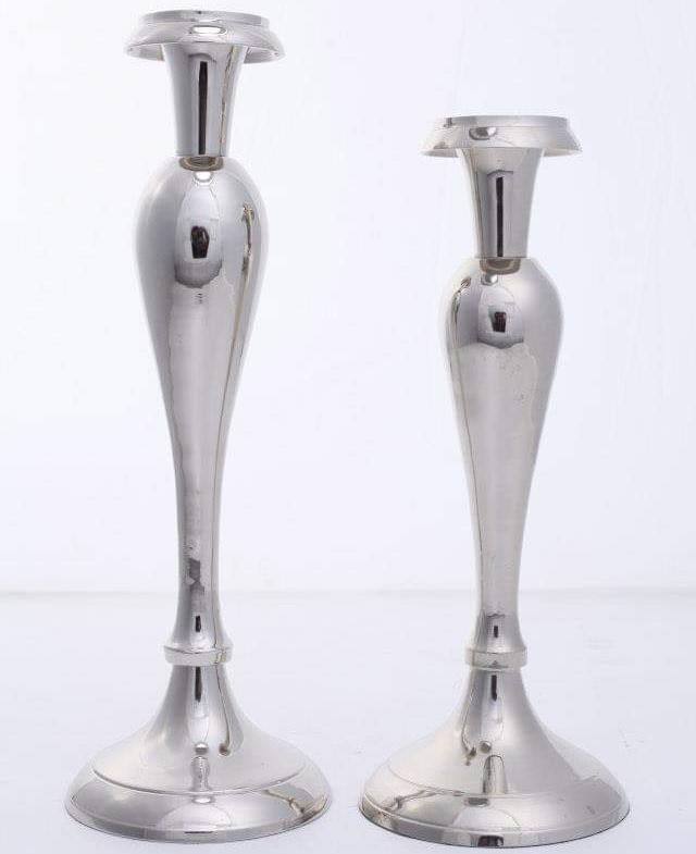 เชิงเทียนตั้งโต๊ะ,เชิงเทียนสำหรับตกแต่งบ้านงานแต่งงานเชิงเทียนโลหะสีเงินชุด2ชิ้น