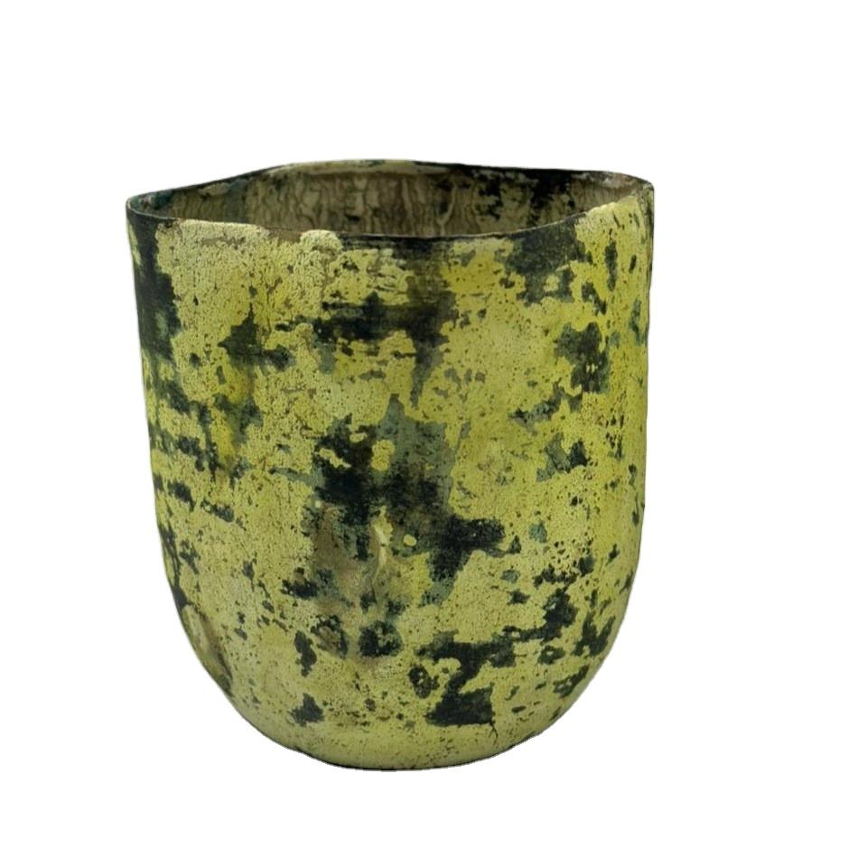 โถเทียนทรงกระบอกสีเหลืองโบราณรูปทรงโค้ง
