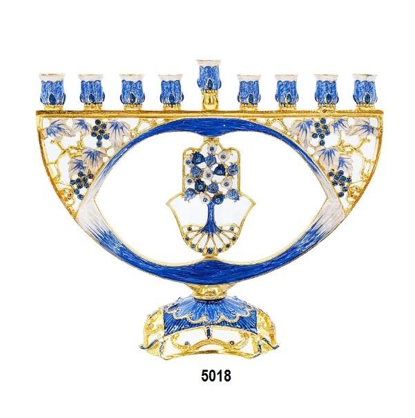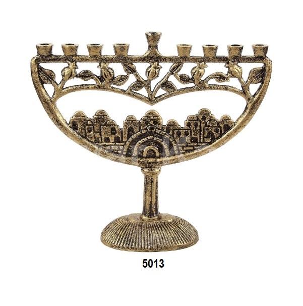 เทียน menorah เทียนอลูมิเนียมวินเทจ-Hanukkah menorah การออกแบบเยรูซาเล็มโบราณที่มีเสร็จสิ้นสีเงินโบราณ