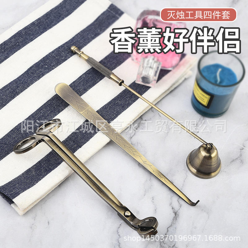 ชุดเครื่องมือทำเทียน ที่ตัดไส้เทียน ตะขอดับเทียน สีบรอนซ์ ทำจากสแตนเลสขัดเงา ใช้งานง่ายสำหรับการดูแลเทียน