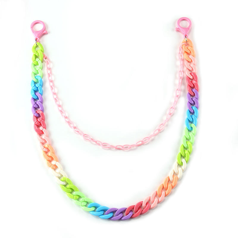 โซ่คล้องกางเกงเรซิ่นสองชั้นสีลูกกวาดสำหรับผู้หญิง สไตล์ลำลองแนวสตรีท แฟชั่นเครื่องประดับ