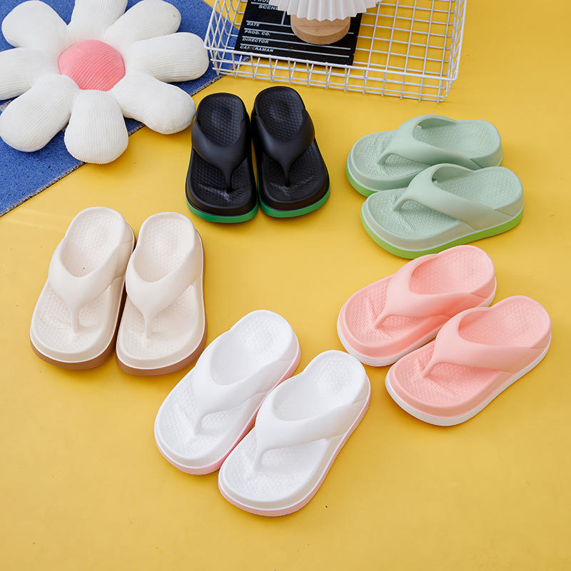 รองเท้าแตะส้นแบนผู้หญิงสีลูกกวาดพื้นหนากันลื่นรองเท้าแตะชายหาดฤดูร้อนสวมใส่สบาย QN 612B