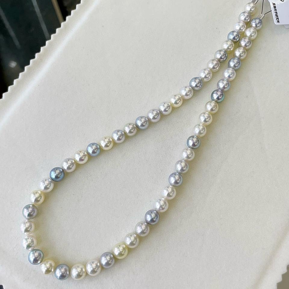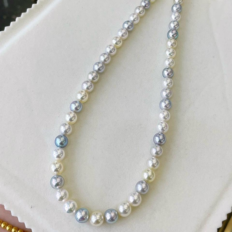 สร้อยคอมุกอะโกย่าน้ำจืดทรงกลม ขนาด 6-8 มม. หลากสี แบบยาว รุ่น Candy Mixed Color Queen รับประกันคุณภาพ รองรับสีเดียว