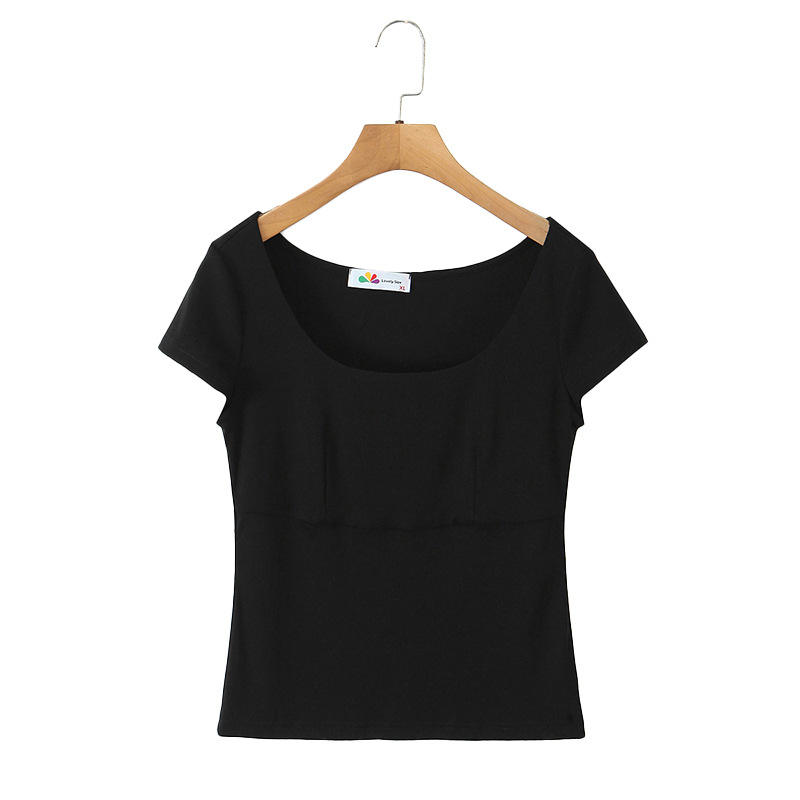 แคนดี้ช็อปเสื้อยืดผู้หญิงไซส์ใหญ่ สีพื้น ผ้าถัก คอเหลี่ยม สีดำ แขนสั้น ยืดได้ กระชับรูปร่าง