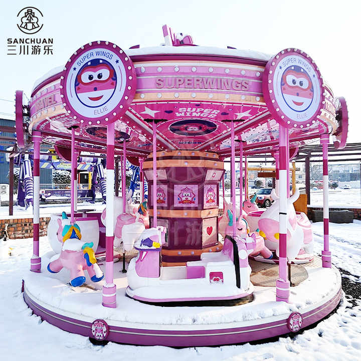 เครื่องเล่นม้าหมุนหรูหราสำหรับเด็ก รุ่นซุปเปอร์วิงส์ ธีมขนมหวาน สำหรับสวนสนุกและสถานที่ท่องเที่ยว ขาย