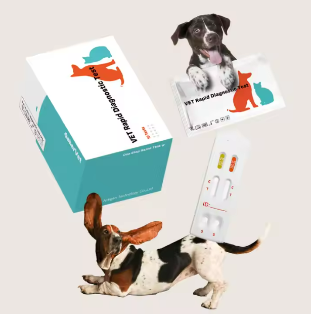 ชุดตรวจแอนติบอดี/แอนติเจนสุนัขแบบเร็ว อุปกรณ์วินิจฉัยทางสัตวแพทย์ สำหรับตรวจหา CDV, CPV, CCVAg, CAV-IIAg,โรคหลอดเลือดสมองจากไวรัสในสัตว์ (โรคหลอดเลือดสมองในสัตว์) ได้รับการรับรองมาตรฐาน CE พร้อมอายุการเก็บรักษา 2 ปี
