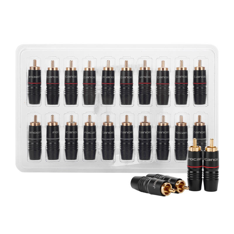 ขั้วต่อ RCA แบบ Canoe ขนาด 3.18 มม. สีดำ ชุบทอง ป้องกันสัญญาณรบกวน สำหรับเสียงและวิดีโอ บรรจุในแพ็คพลาสติกแบบแขวนได้