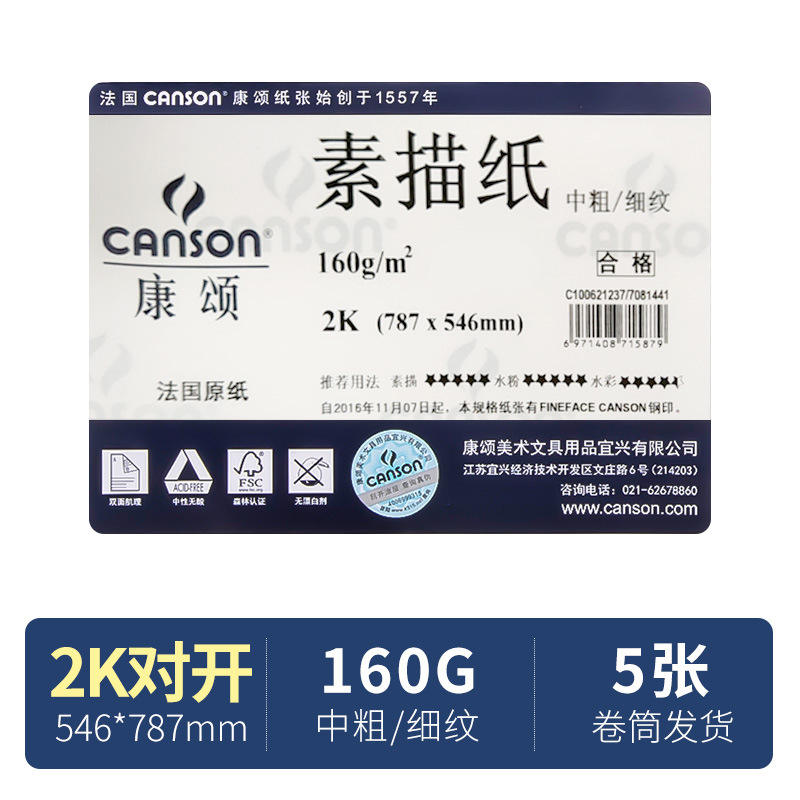 Canson 150G 160G 180G 50แผ่น/แพ็คผลิตกระดาษร่างคุณภาพสูง K0 2K A0 A1สำหรับศิลปินมืออาชีพ