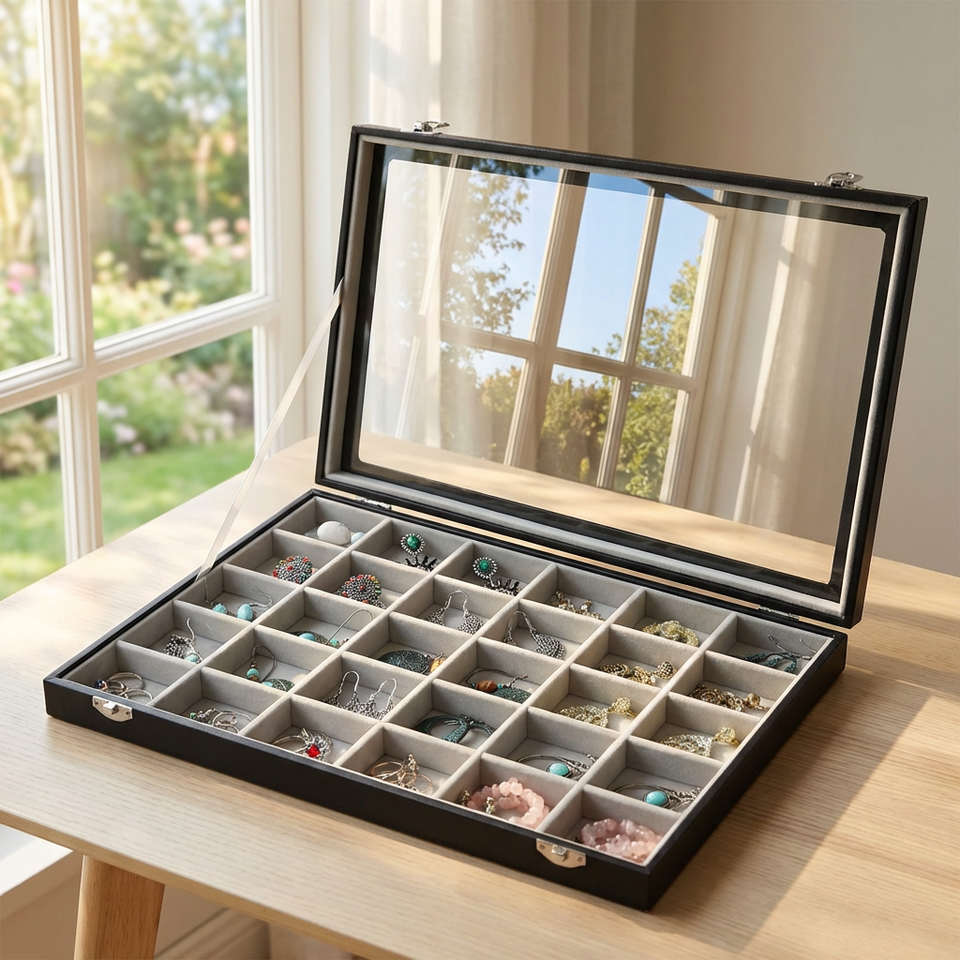 ถาดใส่เครื่องประดับแบบตั้งโต๊ะสำหรับแหวน ต่างหู สร้อยคอ