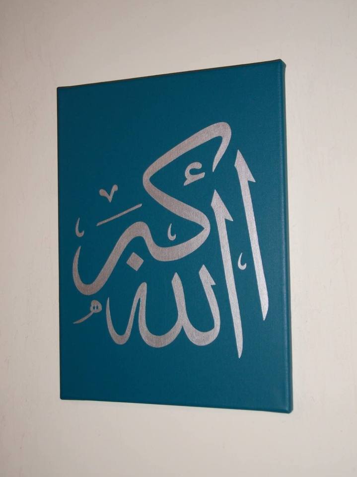 ผ้าใบอิสลามศิลปะผนังประดิษฐ์ตัวอักษรอัลเลาะห์สำหรับการตกแต่งหลายสีการออกแบบที่ทันสมัยผ้าใบผนังอิสลามศิลปะอัลลอดิจิตอล