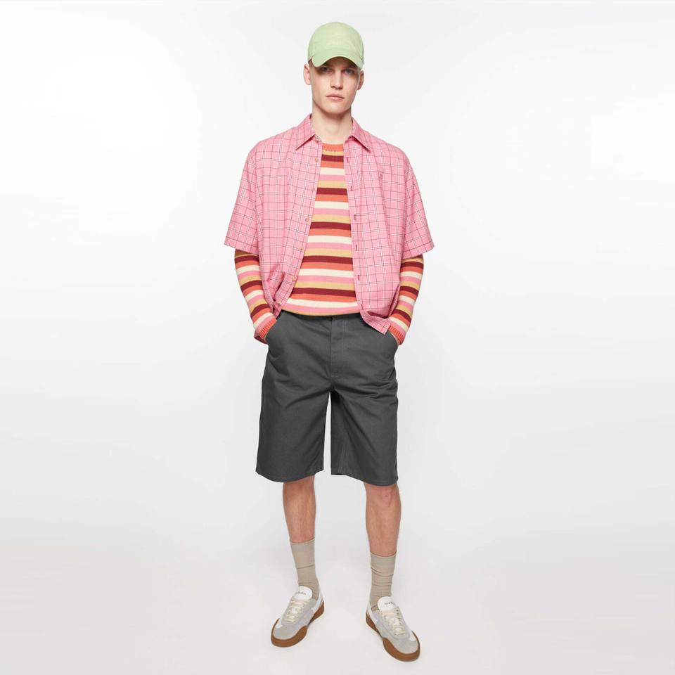 กางเกงขาสั้นผ้าแคนวาสสำหรับผู้ชาย-ใช้ได้ทั้งชายและหญิงแบบปกติเอวกลางขากว้างความยาวเข่าผ้าแห้งเร็วและผ้าฝ้ายย้อมสีด้วยแผ่นหนัง