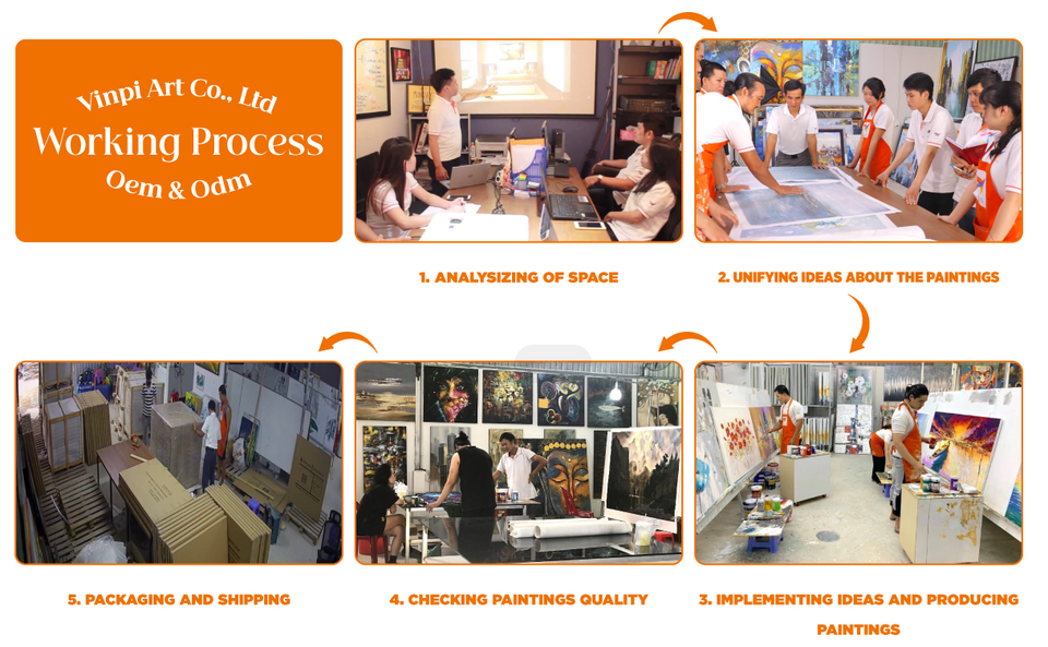 Canvas Supported Unique Hand-Drawn Houses Wall Art Oil Paintings of Lotus Flowers for Home Hotels Homestays Landscape Subjects