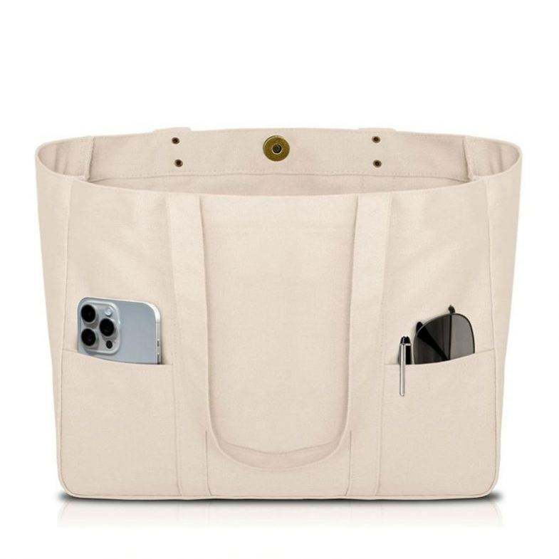 กระเป๋าผ้าแคนวาส - กระเป๋าอเนกประสงค์พร้อมช่องด้านหน้า 2 ช่องและช่องใส่แล็ปท็อป กระเป๋าสำหรับใช้งานทุกวันแบบทนทาน
