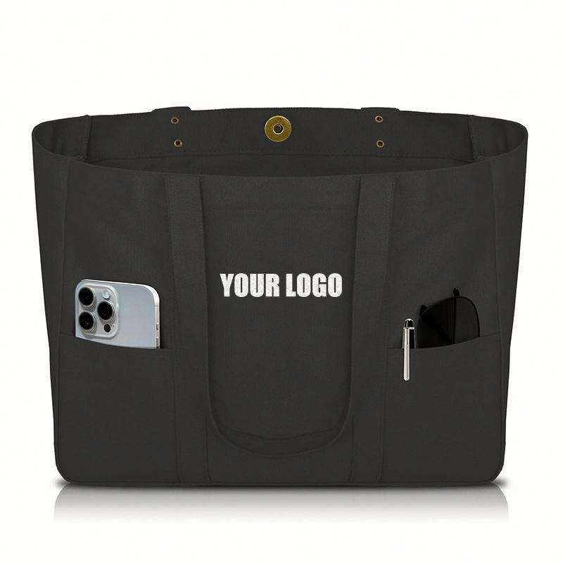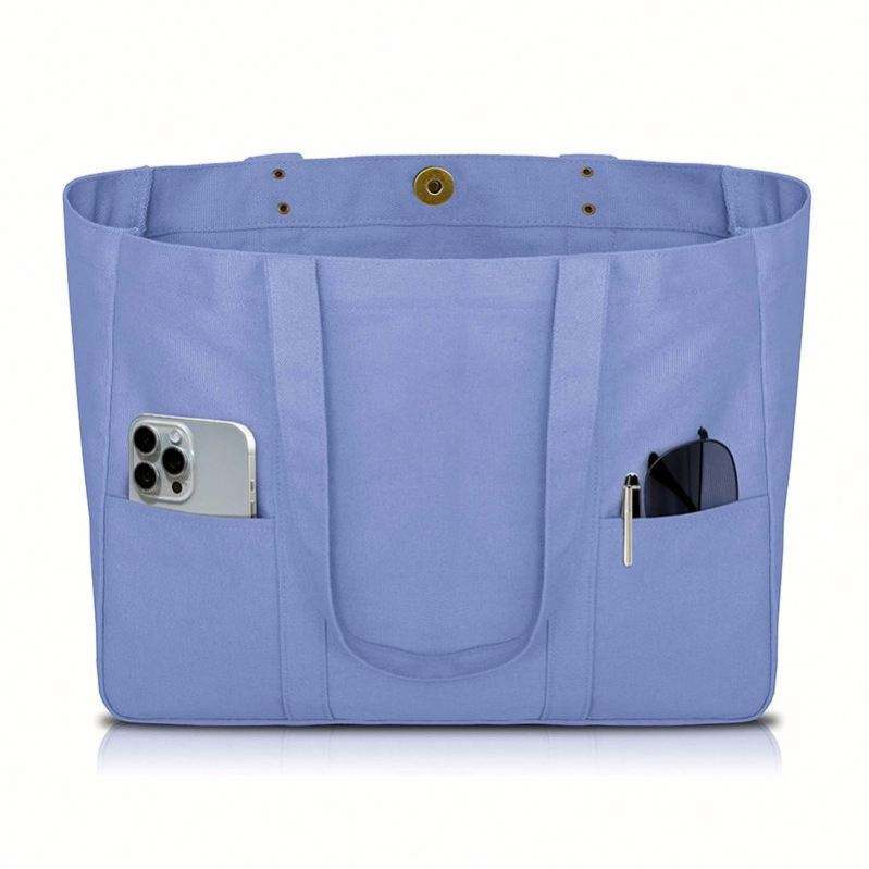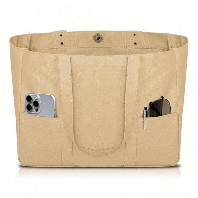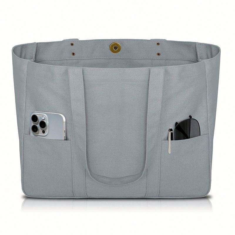 กระเป๋าผ้าแคนวาส - กระเป๋าอเนกประสงค์พร้อมช่องด้านหน้า 2 ช่องและช่องใส่แล็ปท็อป กระเป๋าสำหรับใช้งานทุกวันแบบทนทาน