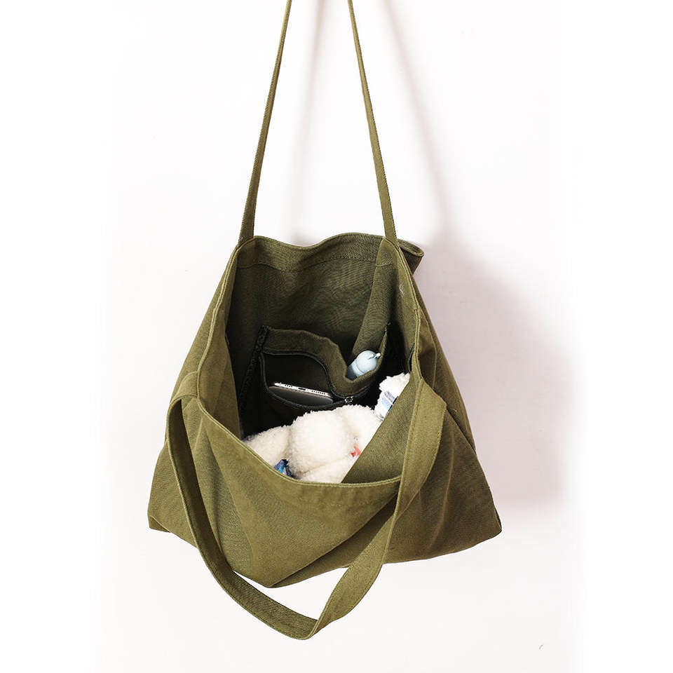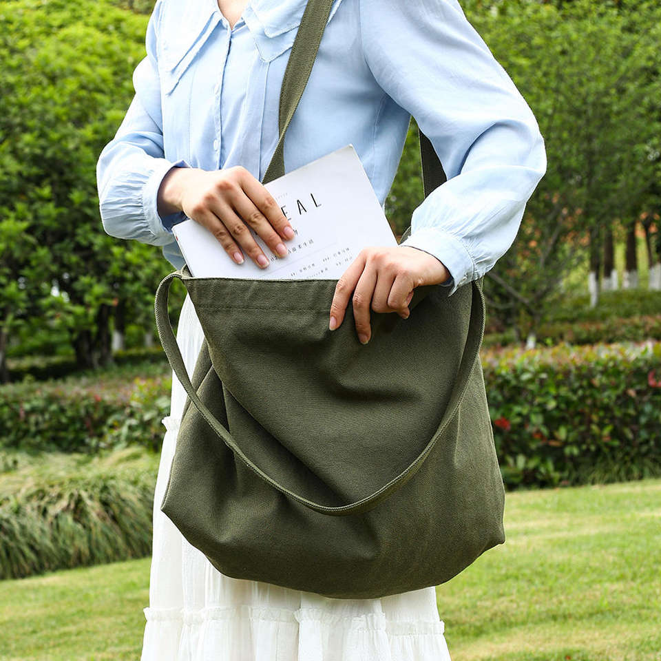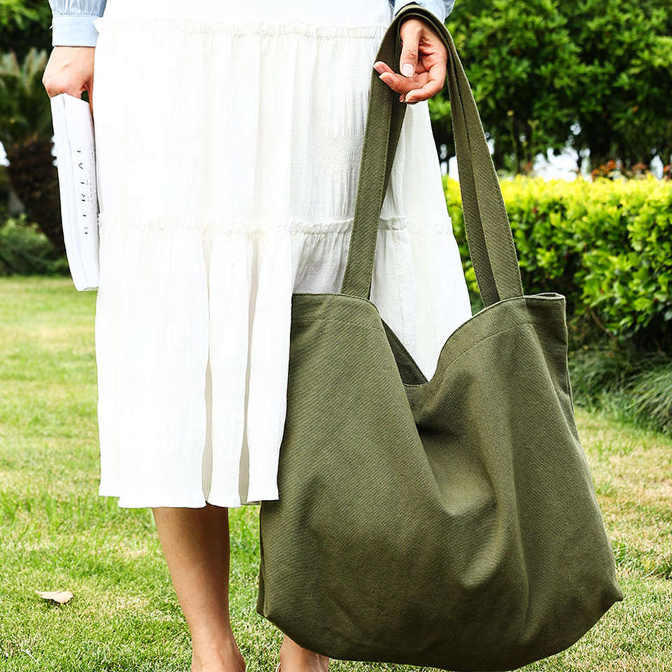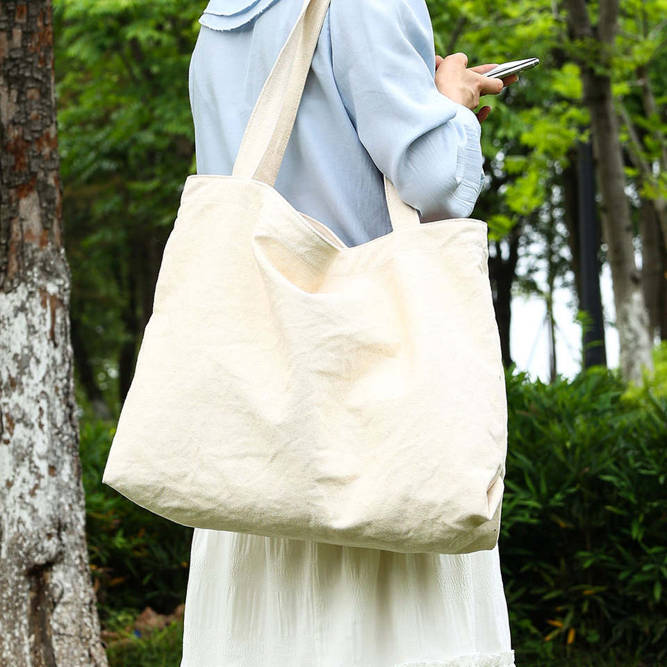 กระเป๋าผ้าแคนวาสพร้อมโลโก้ที่ปรับแต่งได้ ผ้าฝ้ายแท้ ขนาดใหญ่ กระเป๋าสะพายไหล่ลำลองสำหรับผู้หญิง กระเป๋าช้อปปิ้ง
