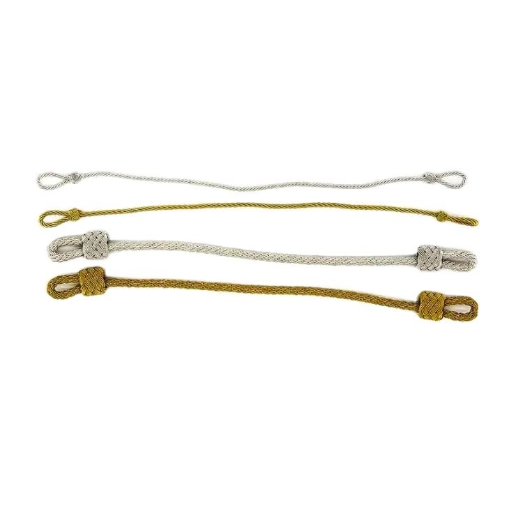 สายร้อยหมวกสำหรับหมวกไหม ใช้กับเครื่องแต่งกาย หมวกเจ้าหน้าที่ ตกแต่งด้วยการถัก ผลิตในปากีสถาน ผลิตตามสั่ง เป็นมิตรกับสิ่งแวดล้อม ใช้ลวดทองเหลือง
