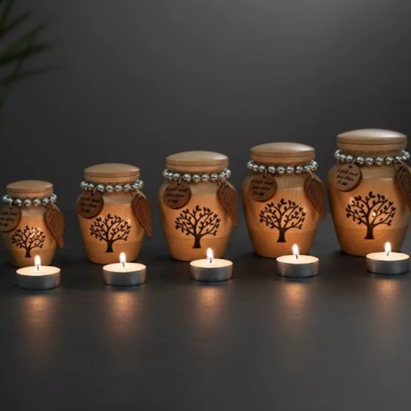 โกศบรรจุอัฐิไม้ธรรมชาติ ลายไม้สวยงาม งานฝีมือ ภาชนะใส่เถ้ากระดูก โกศเผาศพที่ยั่งยืนได้ โกศไม้ขัดเงา โกศไม้คลาสสิก โกศที่ระลึก