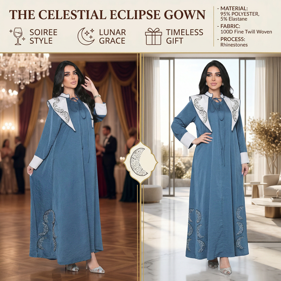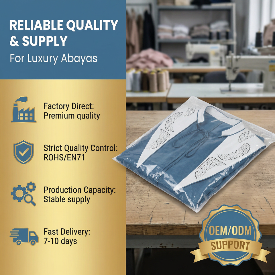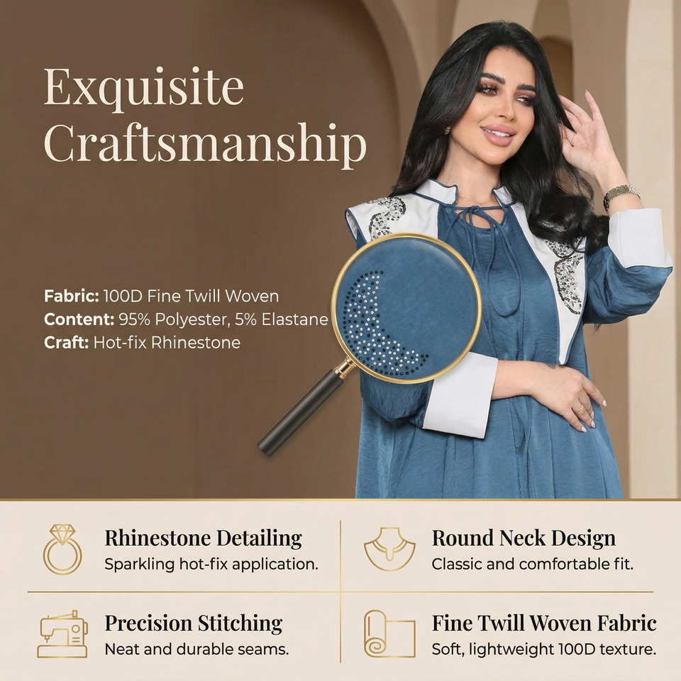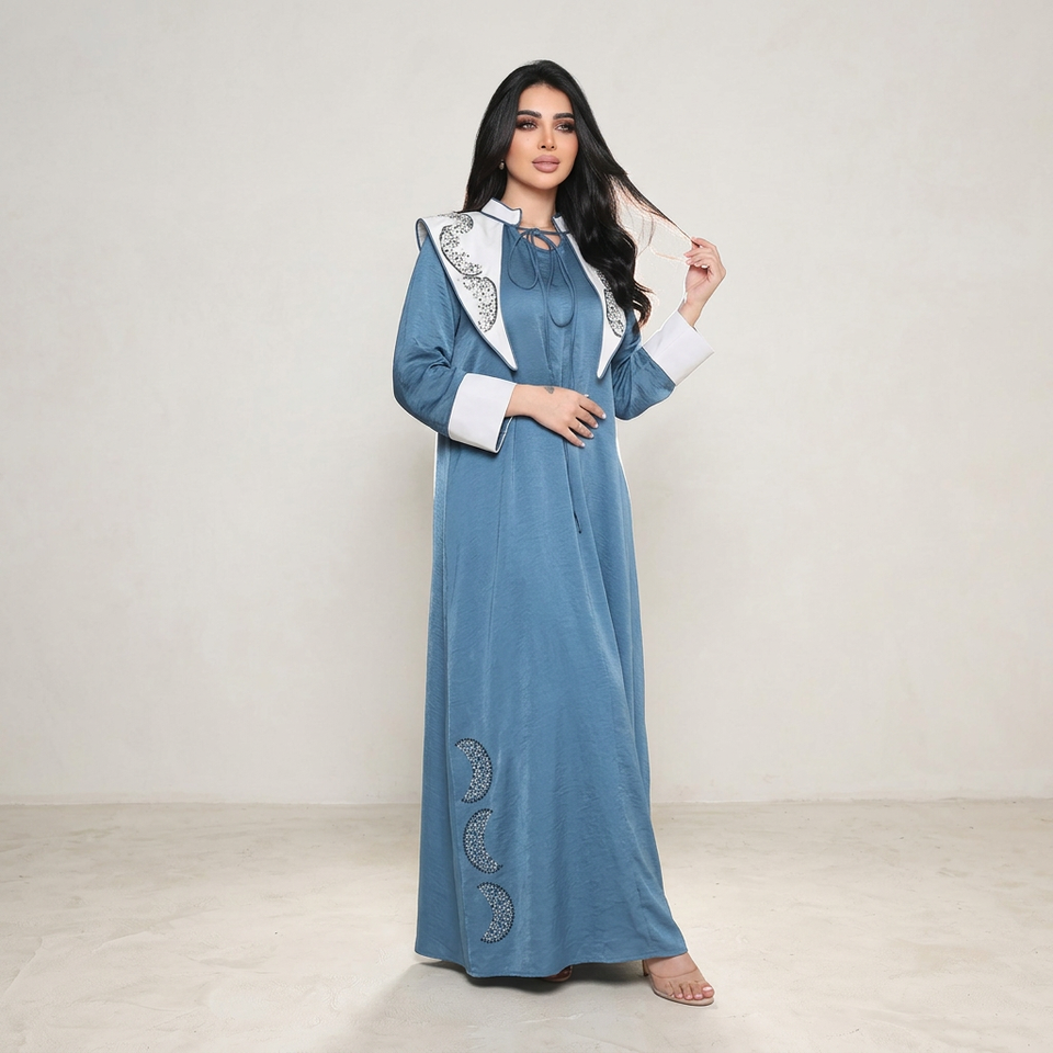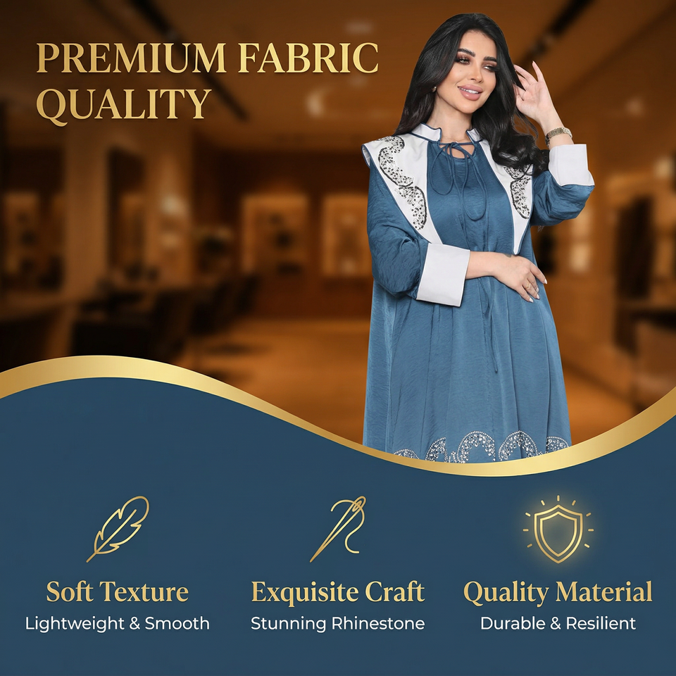 ชุดเดรสยาวสไตล์มุสลิมสำหรับผู้หญิง ตกแต่งด้วยงานปักแบบฮอตฟิกซ์ ผ้าทอ 100D เหมาะสำหรับการแต่งกายแบบสุภาพ
