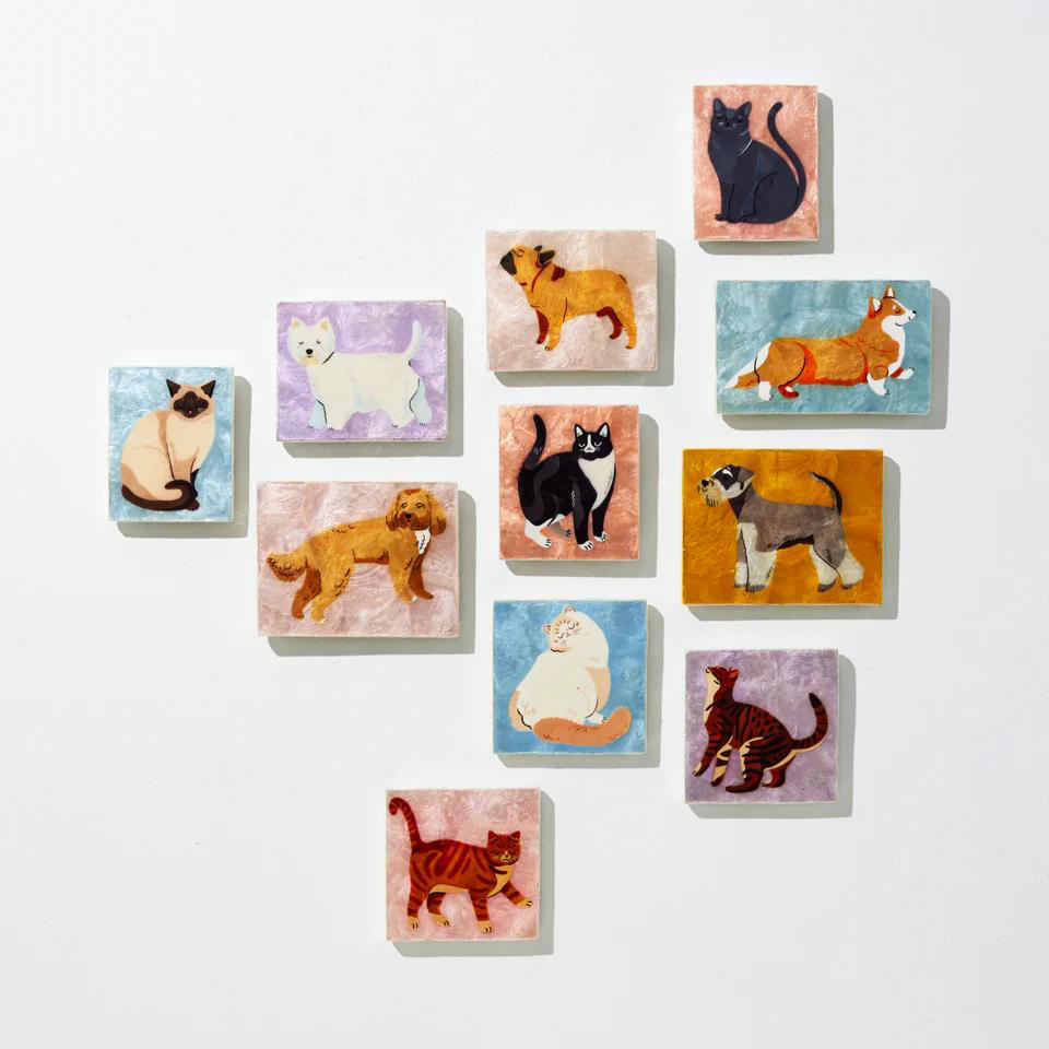 Capiz ศิลปะผนังเปลือกหอยกับสุนัขดัชชุนด์ธีมสัตว์เลี้ยงทำด้วยมือของตกแต่งกระเบื้องติดผนังรูปสัตว์ที่ไม่เหมือนใครของขวัญคนรักสำหรับบ้านทันสมัย