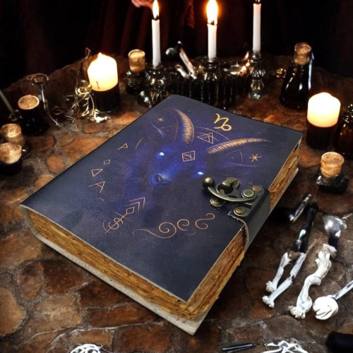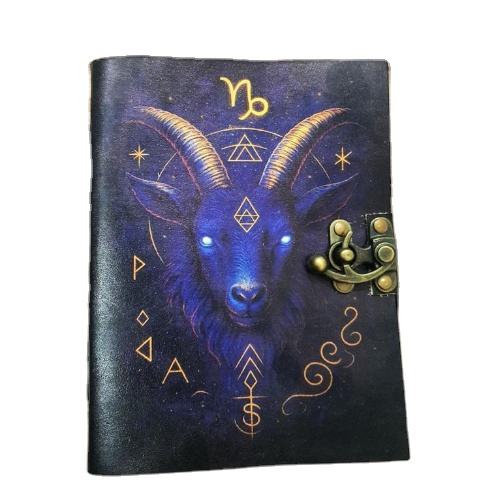 สมุดบันทึกหนังพิมพ์ลายราศีมังกร พร้อมกุญแจทองเหลืองโบราณ ของขวัญโหราศาสตร์วินเทจสำหรับผู้ชาย หนังสือคาถา การอ่านด้านจิตวิญญาณ
