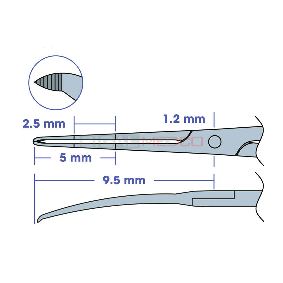 คีม Capsulorhexis แบบแมนนวลทำจากสเตนเลสสตีลจากเยอรมันปลายที่มีความคมชัดมีฟันปลาเชื่อมต่อกันแบบไขว้ความกว้าง1.2มม. เกี่ยวกับโรคตา