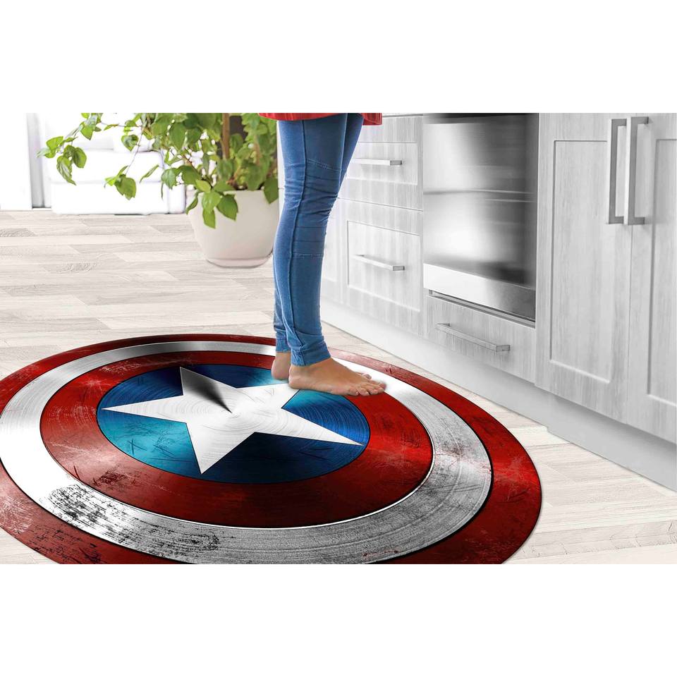 พรมรูปโล่กัปตันอเมริกา: พรมตกแต่งทรงกลมกันลื่นสไตล์โมเดิร์น พร้อมพรมขนนุ่ม